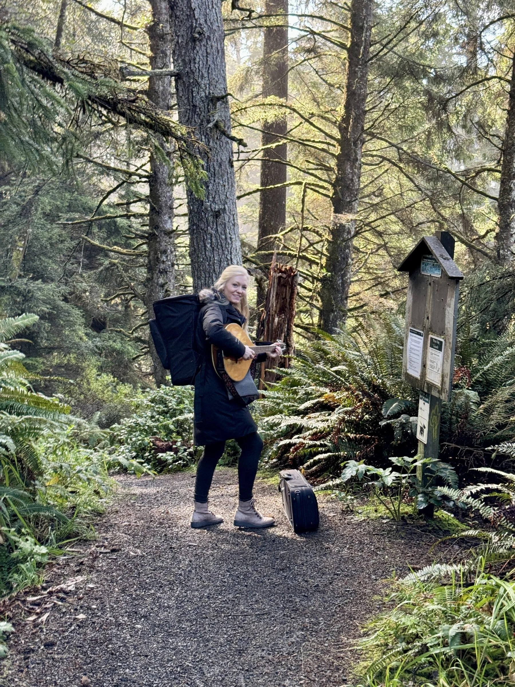 ^ Willow being an "Adventurer" with the best sidekicks: an octave mandolin in hand, a violin on the ground, and a djembe on the back!